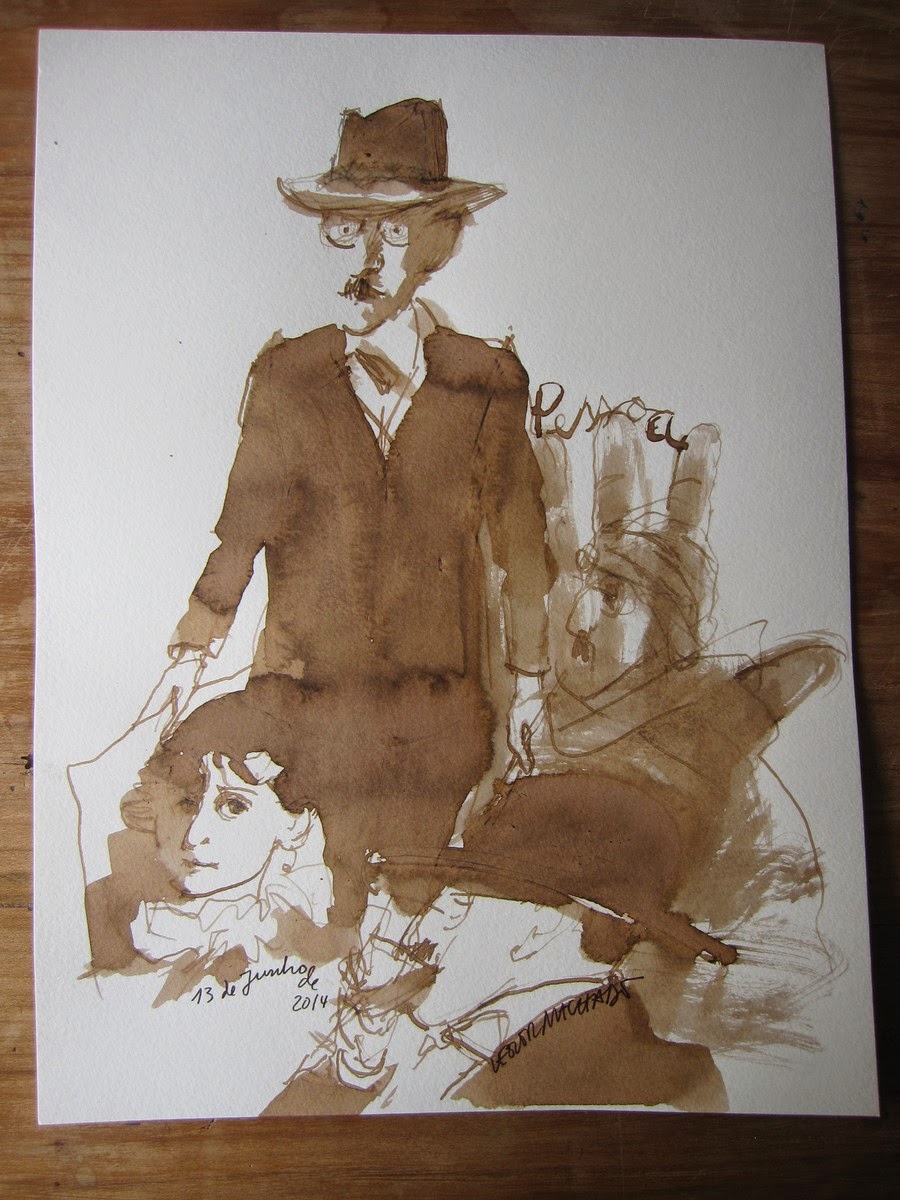 Hoje é dia de comemorarmos o mais português dos santos- Santo António de Lisboa e também do poeta- Fernando Pessoa que nasceu neste dia.O desenho de Santo António inspirei-me nas imagens da ceramista Júlia Ramalho, de Barcelos. O desenho de Pessoa foi composto a partir de fotos da sua foto biografia. Ambos são feitos a pena sobre papel.
