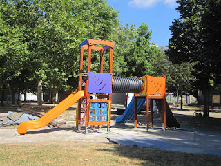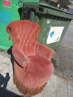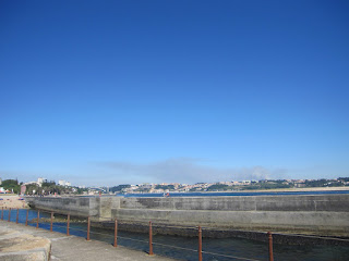 Passeio matinal junto à praia hoje repleta de gente logo cedo. Não faltou também uma «senhorinha» em muito bom estado de conservação, junto ao contentor do lixo
